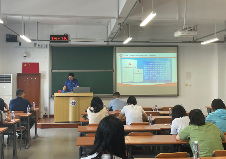 随后,陈志讲授党纪学习教育专题党课,主要从习近平总书记关于党纪学习教育重要论述及指示批示精神、新修订《中国共产党纪律处分条例》重点变化解读、新时代高校教师职业行为十项准则三个方面为全院党员教师讲授党纪学习教育专题党课,并对开展好党纪学习教育提出几点工作要求。一是要统一思想、提高认识,全院党员要高度重视此次党纪学习教育,要原原本本学、逐条逐句学,坚持党性党风党纪一起抓,推动学纪、知纪、明纪、守纪;二是要坚持把纪律挺在前面,对违反党纪的问题,包括师德师风问题,发现一起坚决处理一起,切实维护党纪党规的严肃性;三是准确运用“四种形态”,落实“三个区分开来”,把从严管理监督和鼓励担当作为统一起来,不断推动学院全面从严治党向纵深发展,提升全体党员队伍的创造力、凝聚力、战斗力,切实推进环境学院各项事业高质量发展!