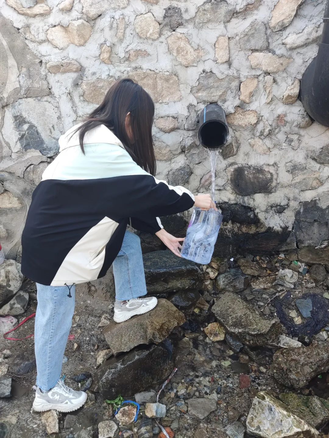 此外,古将村黄书记向大家介绍了未来关于旅游研学的设计构想,以及关于古将村“非遗”豆腐厂房的设计规划,包括设施建设以及村容村貌提升等方面的部署。在古将村水泉,同学们在永利集团yl6809官网党委组织委员郑如秉老师的带领下用容器收集了部分水样,以便返回学校后在实验室对古将村水质进行检测。